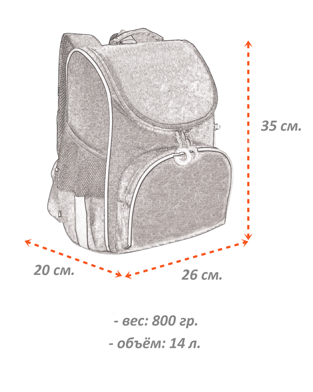 светоотражающие элементы на плечевых ремнях, боковых карманах и передней части ранца;