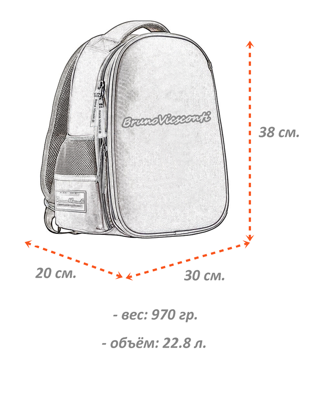 2 основных отделения, 2 боковых кармана, дополнительные отделения и карманы внутри ранца;